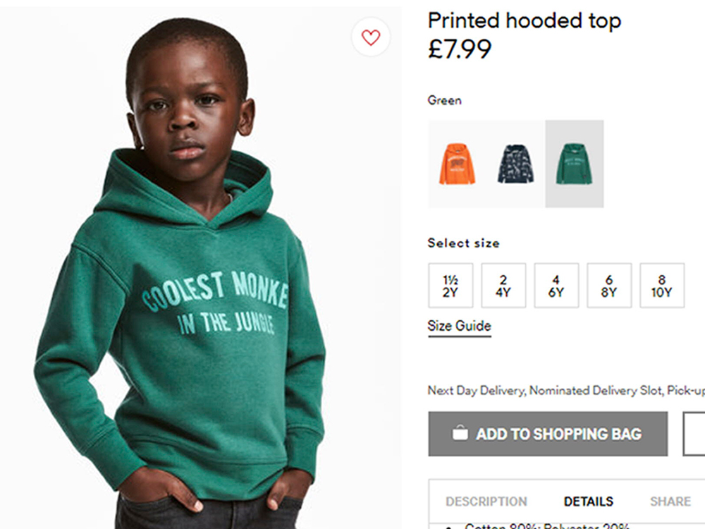 Markanın reklam afişinde, siyah bir çocuğa üzerinde “ormandaki en havalı maymun” yazan bir sweatshirt giydirmesi tepkilere neden olmuştu.