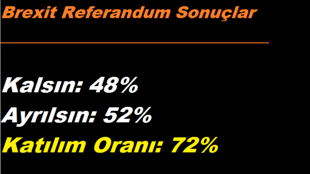 Büyük Britanya böylece AB’den ayrılma kararı alan ilk ülke olarak tarihe geçti. Kısaca Brexit olarak anılan ayrılık kararının AB’yi de ağır bir siyasi krizle yüz yüze bırakacağı tahmin ediliyor.