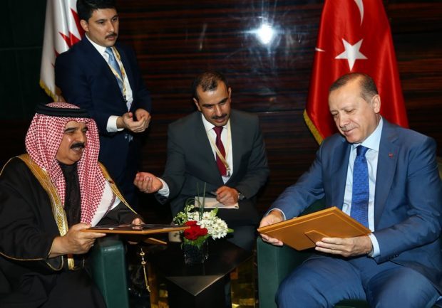 President Recep Tayyip Erdoğan had a tete-a-tete meeting with King Hamad bin Isa Al Khalifa as part of his official visit to Bahrain.