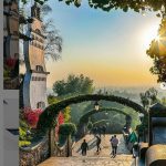 The crew neck knit lined with snowflakes combines a dress with European tile motifs. There are designs reminiscent of a nostalgic picture postcard, such as a windmill, sailing boat, and a girl standing in a quiet landscape. On the other hand, the one-piece tops have been switched to small floral print shirts. The texture of the crisp cotton and the bright tone gave it a modern feel.