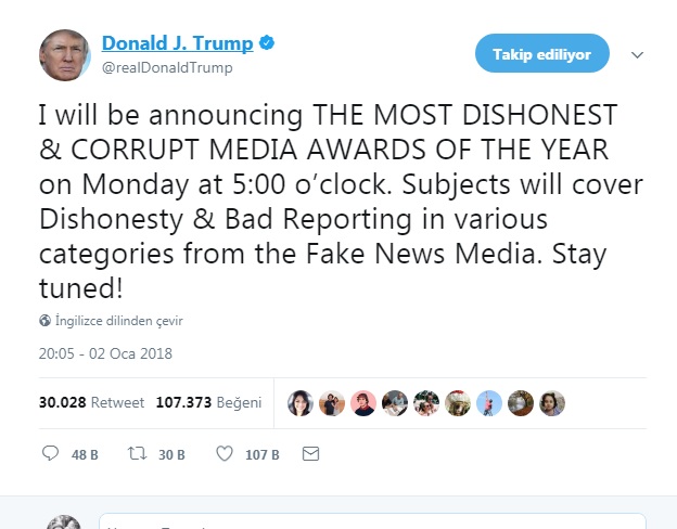 Trump: I will be Announcing the Most Dishonest and Corrupt Media Awards of the Year!